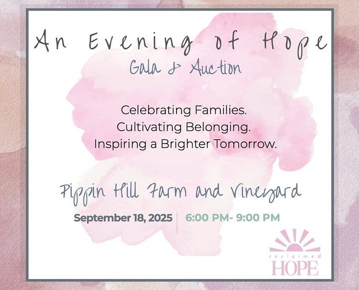 Reed and I are looking forward to dressing up for the Evening of Hope Gala on Thursday, September 18, 2025. We would love for you to join us! Come hear more about Reclaimed Hope Initiative and Camp Hope and support the incredible work they are doing for children and their families in our community. Click here to learn more about the evening event.
