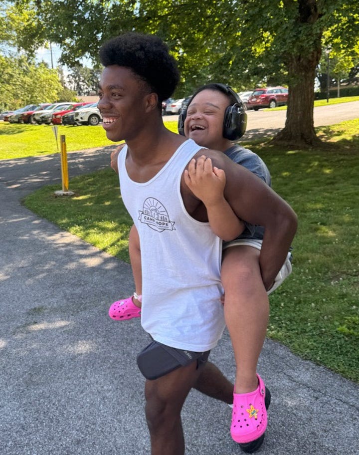 In the final week of camp, I noticed fewer walkie-talkie calls for concerns and more requests for the “thirty-second dance party” reward. Many campers experienced so many great moments throughout their day that they often earned a three-minute fun break in the chapel. It was a delight to be “a fly in the room” as this camper and counselor enjoyed a joyful break together.