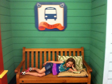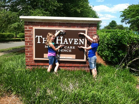 On the last day of our trip, we spent an afternoon at The Haven in Highland Creek. The girls had a blast in the indoor neighborhood, dressing up in old clothes and sitting at the bus stop. We took part in a birthday celebration by handing out cake to the residents and enjoying a slice with them. Before heading home, River and Haven stopped by the outdoor sign for a photo, and the girls couldn’t resist smiling as they pointed out Haven’s name on the marquee.