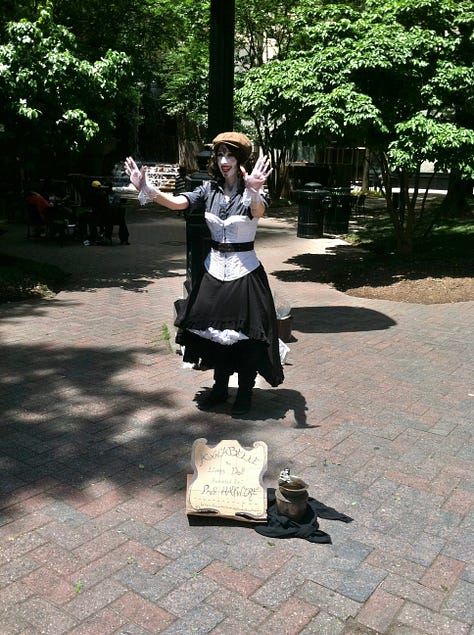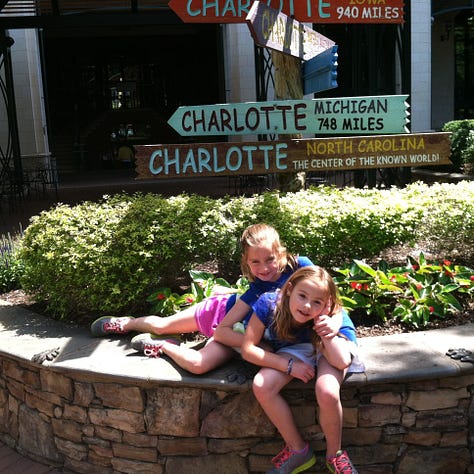 In the spring of 2014, River, Haven, and I returned to Charlotte to visit places we once called home before moving to Virginia. We drove past our old house and the hospital where the girls were born. Later, we explored Uptown Charlotte, where we visited Romare Bearden Park and watched a mime perform in the center of town.